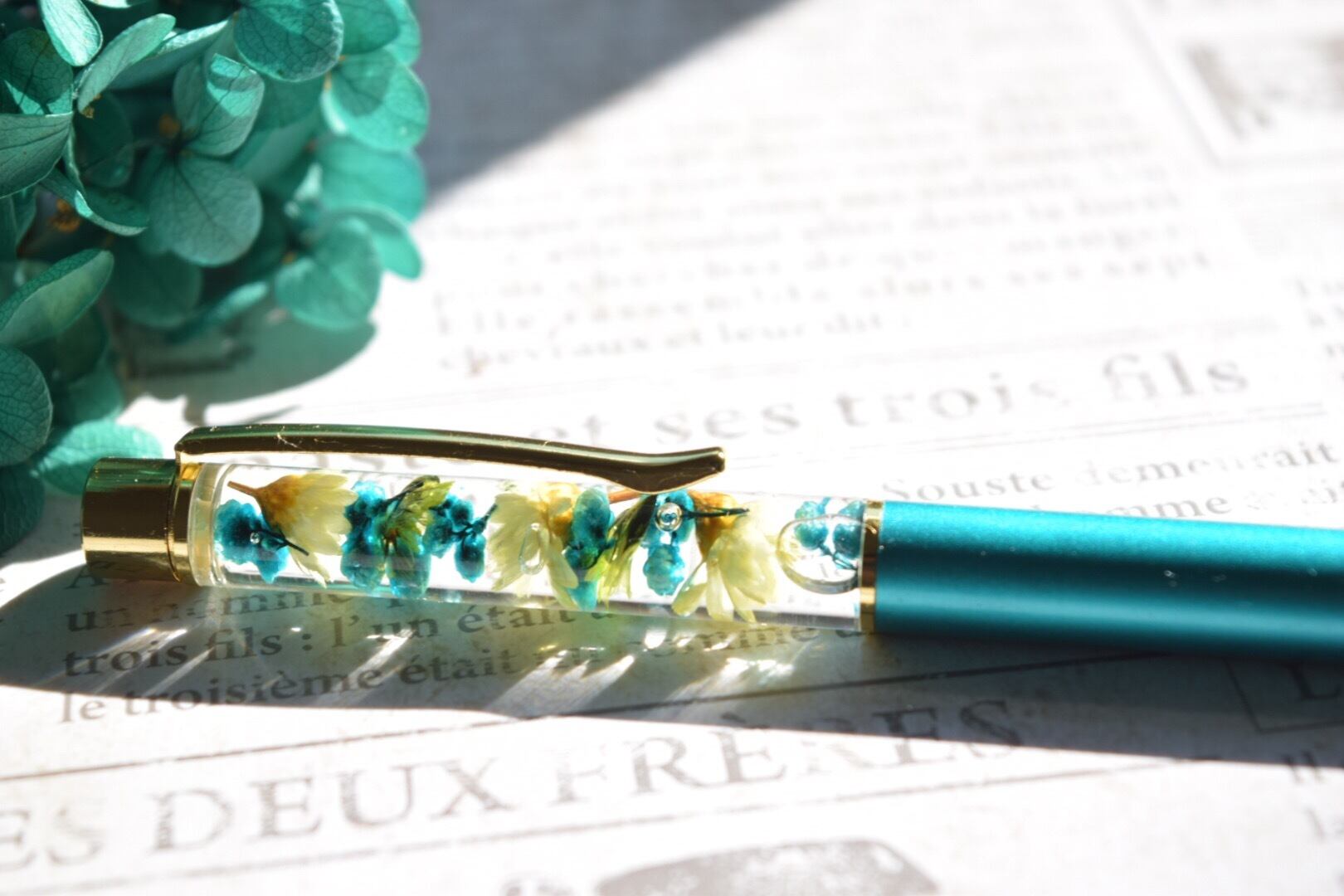 持ち手の一部がハーバリウムとなった美しいボールペンです。
