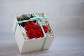 ボックスの中にプリザーブドフラワーのローズで可愛らしいハートを。